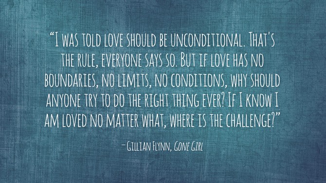 “Tôi đã được dạy rằng, tình yêu là vô điều kiện. Đó là quy tắc, mọi người đều nói như vậy. Nhưng nếu tình yêu không có những ràng buộc, giới hạn hay điều kiện, vậy tại sao con người nên cố làm những việc đúng đắn. Nếu tôi biết rằng tỗi vẫn sẽ được yêu dù tôi đã gây ra chuyện gì, thì thách thức ở đâu?”